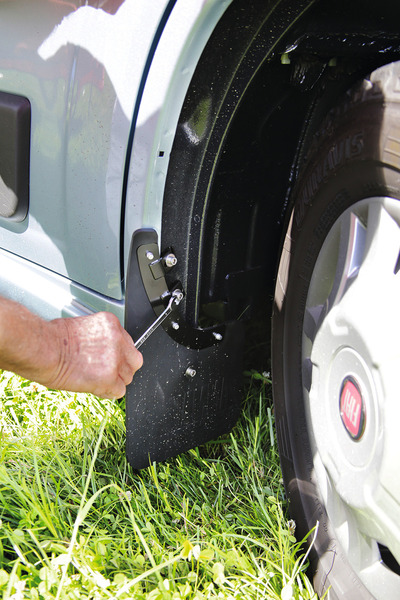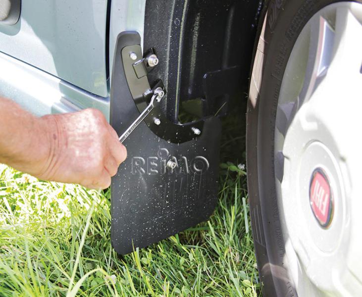 A set of mudflaps for the front - 2 pcs. The insertation of the holder is not necessary at the Fiat Ducato models after year 2006. Easy mounting at the front wheel arch of Fiat Ducato ( from model year 2006). Made of solid but flexible rubber foam.