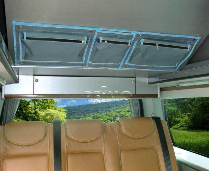 Car Organizer: Hanging bag with 3 pockets and zippers. Colour: grey/blue. Push-button fastening. Utensilo suspension bags create order in vehicle and garage. Dimensions approx.: W102 x H30 cm.