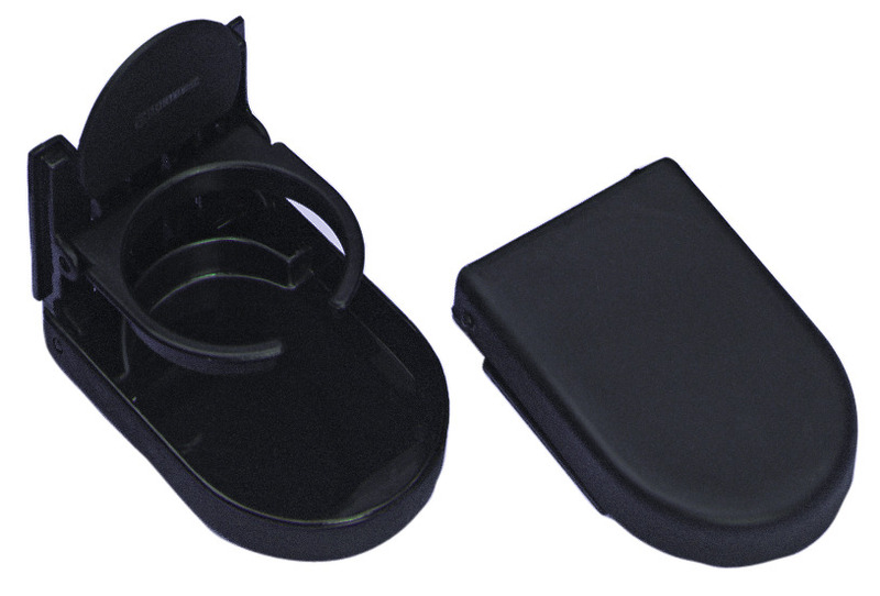 For cans, bottles and mugs. Mounting at the side. Colour: black.