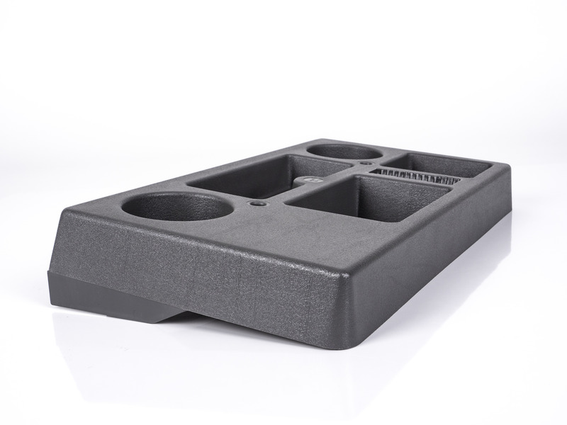 Noble design with the universally usable space division. Color: gray. For unpadded dashboard without airbag.