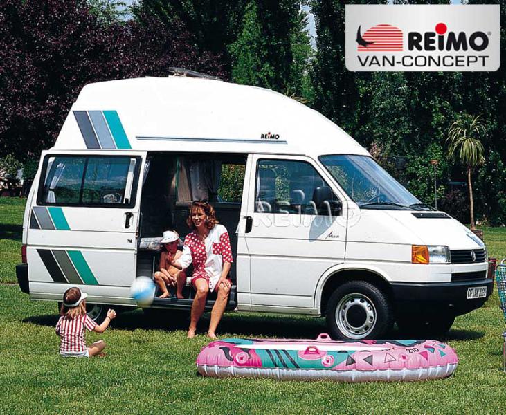 VW T4 high top roof - glass fiber reinforced and streamlined. Surface colored in VW white (code R902). The high top roof is clued to the roof. Bed within the high top and hidden active rail optional available. For wheelbase 2,920 mm. Roof dimensions appr. (LxWxH) 297 x 149 x 75 cm, headroom appr. 210 cm, increase of vehicle height appr. 64 cm.