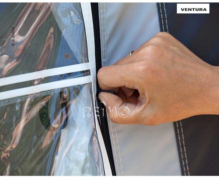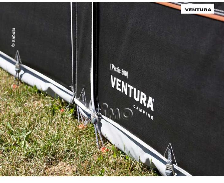 The Ventura Pacific 300 is a light awning with a depth of 300 cm. The removable and foldable front and side parts provide a unique veranda feeling. With a depth of 300 cm, the Ventura Pacific 300 fits all kinds of things that make a camping holiday cosy.