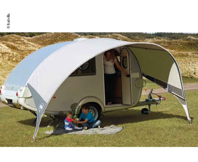 for T@B 320 RS/T@B 320 offroad Material: completely made of light polyester fabric coated on one side. Scope of supply: Packed in a carrying bag with separate compartments for the poles and the skin. Screwless FixOn II fittings. Frame: Aluminium