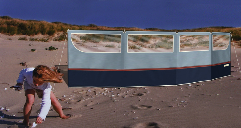 With 4 elements and panoramic windows for the best overview. Measures: w 5m x h 1,2m, colour: blue/red/grey, Packsize: 65 x Ø 16 cm, weight 7,5 kg.