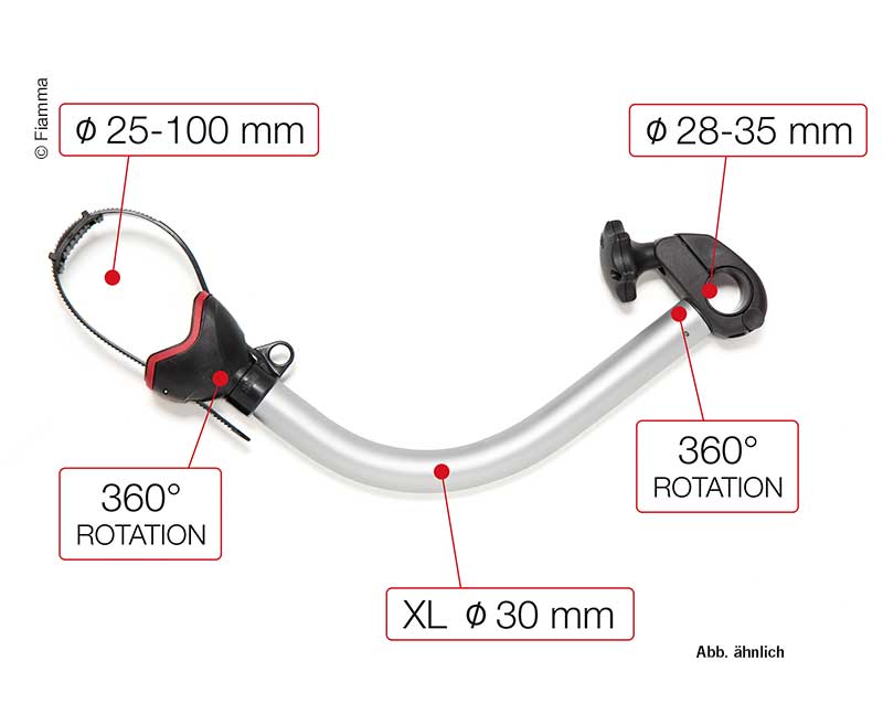 Handle for fastening the knurled screw. The wheels are securely fastened with the Quick-Clip quick-release fastener. Suitable for many bikes. Also for oval pipes.