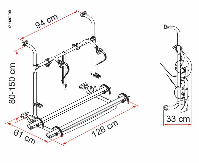 Bike carrier Pro for mounting on Autotrail motorhomes from 2011 onwards, the special feature is that these vehicles have the spare wheel at the rear.