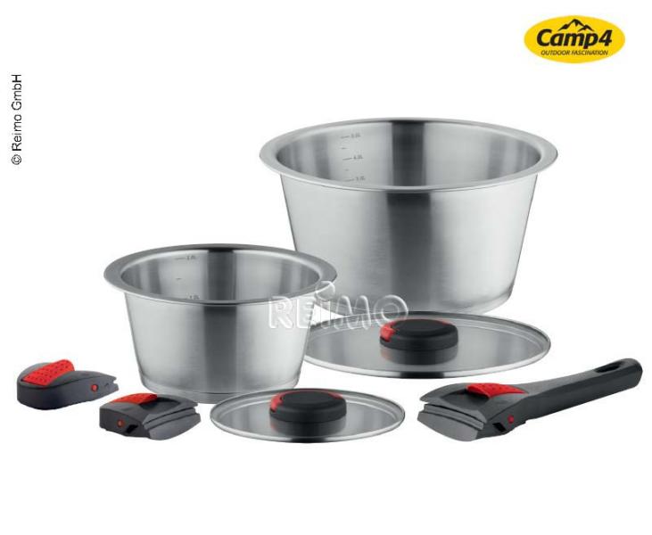 With this premium cookware you cook like the professionals. Made from high quality rustFor cooking, roasting, baking, gratinating, serving, serving.all in one pot. For electric, gas, ceramic, induand halogen stove. Due to the removablehandles as well as the removableThe pots can be stacked into each other to save space. The set spart offers an enormous amount of space in the kitchen and dishwasher. The set consists of: 1 pot 2l, Ø 18 x 10 cm, 1 pot 5l, Ø 24 x 13cm, 1 glass lid Ø 18 cm, 1 glass jarcover Ø 24 cm, 2-piece short handle set in red, 1 long handle.