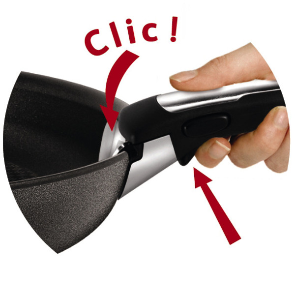 Removable universal handle made of thermoplastics, with stainless steel inlay. Suitable for ovens up to 175°C. Suitable for pot and pan set INGENIO from Tefal.