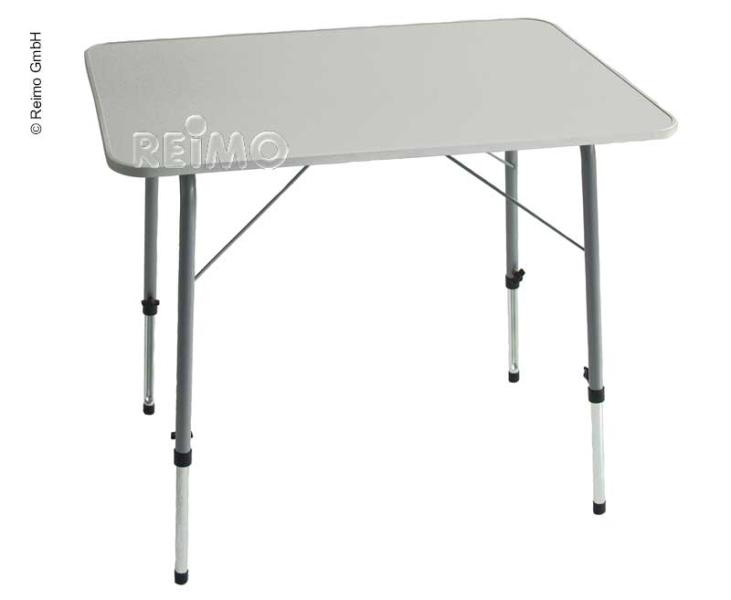 Our camping table Finn with noble aluminum table edge. Due to its robust MDF table top is up to 30kg loadable. Height adjustment is possible from 50 to 69 cm thanks to its robust steel frame.