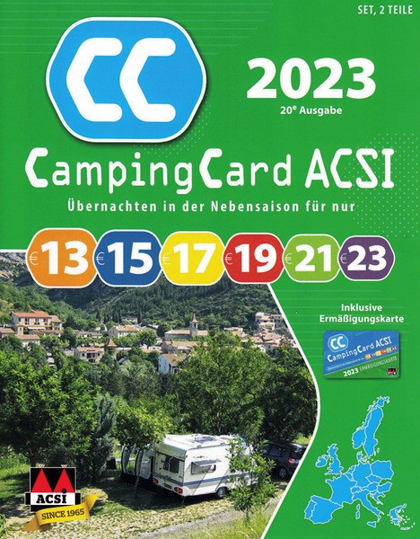 Who would not like to camp especially cheap? With CampingCard ACSI you will never pay too much for your overnight stays in spring and autumn. At 3,000 campsites in Europe, you can spend the night at a low fixed price: for 13, 15, 17, 19, 21 or 23 euros per night*. Very attractive prices for all campers who like to spend their vacations outside the high season! And every year anew, because with a subscription** the new edition is delivered to your home every year before Christmas.