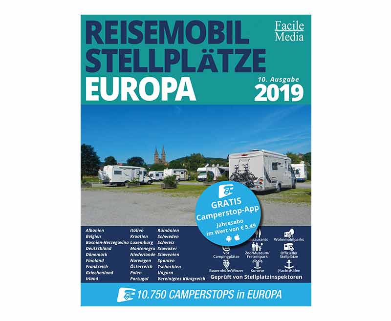 More than 10,750 European motorhome sites in 27 countries. Countries: Albania - Austria - Bosnia-Herz - Belgium - Switzerland - Czech Republic - Germany - Denmark - Spain - Finland - France - United Kingdom - Greece - Croatia - Hungary - Ireland - Italy - Luxembourg - Montenegro - Netherlands - Norway - Poland - Portugal - Romania - Sweden - Slovenia - Slovakia. Scope: 800 pages. with impression photos, Navteq cartography, legal regulations and tourist information for each country.