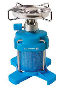 Compact trekking-stove with new clip & go-lock system. Output: 1200W, 4 fold-out pan supports, different pan support positions for big and small pots by supposed wind protection possible. Including stabiliser and windshield. Burning time: 2,5 hours.