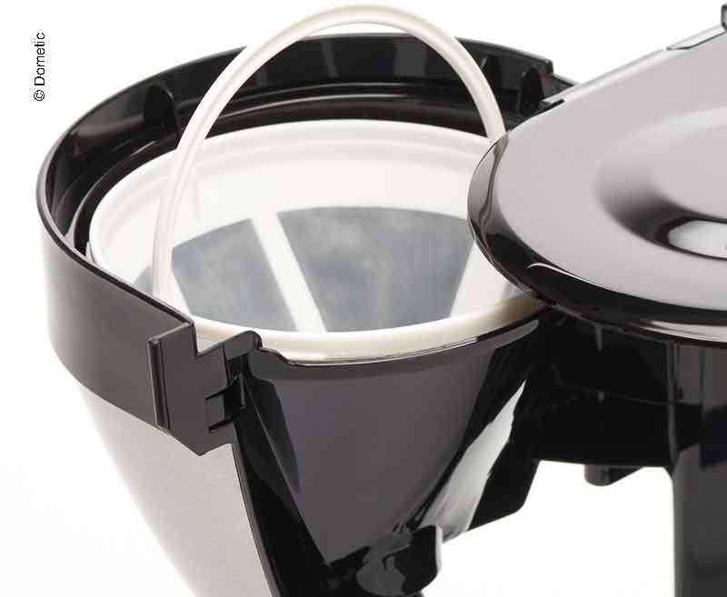 Mobile coffee machine for up to 5 cups of coffee (625ml) which are staying on temperature a long time thanks to the heat retaining plate with thermostat. The decoratively ornamented filter is rotatable and easily accessible. An additional transport security fixes the glass jug with dosage scale. Delivery incl. mounting kit for the fixing at the wall or ground. Perfectly for motor home, car, truck, yacht or boat. 24V operation.