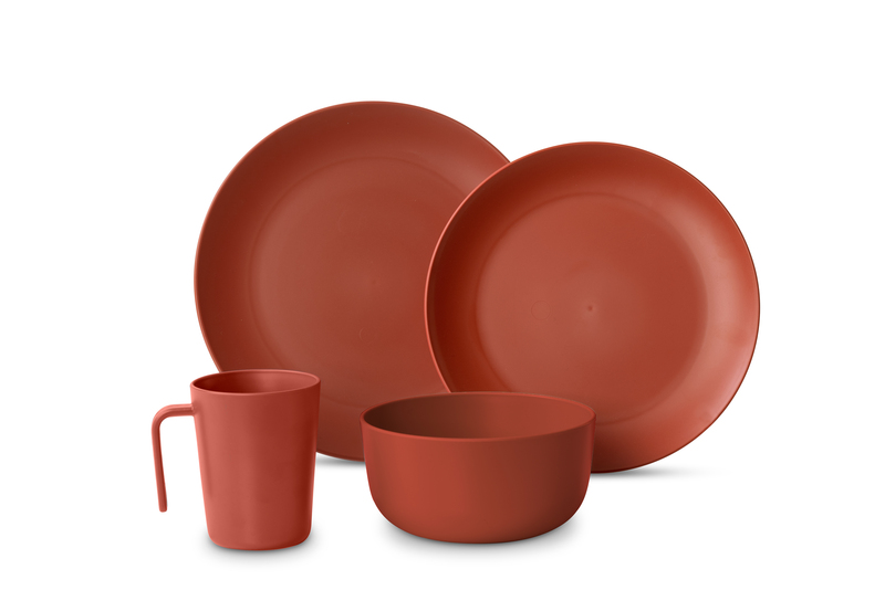Geschirrset ALMERIA TERRA, 8-tlg.,für 2 Pers., recycelte Plastikflasc
