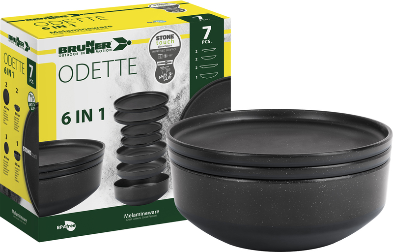Melamin Geschirr-Set ODETTE 6-in-1 black, 7-tlg, für 2 Pers.