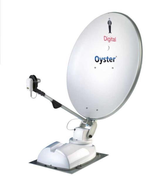 Digitally satellite identification, fully automatic adjustment in 30 - 60 seconds, 80 GB memory capacity (approx. 48h recording time) Time Shift: see a programme from the beginning, while recording, all TV and radio programmes are already stored. Slide-in card system with 2 CI-Slots for all suitable common interface modules (excluding modules and cards) with DVB-T Tuner (DVB-T antenna excluded) mouse with cable display. OBSC system: automatic satellite change by program shift. Reception: Astra 1, 2, Eutelsat W1, W2, W3, W4, Hot Bird, Telecom/Atlantic Bird, Sirius, Thor, Hispasat, Amos 1 and Arabsat 2A, 3. Self closing when starting the engine. Skew: comfortable range optimization with fully automatic SKEW setting up (LNB adjustment). The Oyster system recognizes automatically, into which direction the LNB must be turned.
