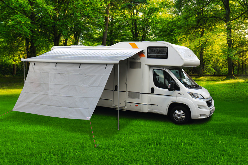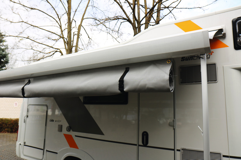 The sun protection protects against sun and reduces the wind draft, it has the material Textilene mesh fabric. The light grey sun protection is suitable for all awning types with 6 mm piping rail in the front profile. It has the following dimensions: width: 280 cm, height: 200 cm. Suitable for awnings from width 300 cm.