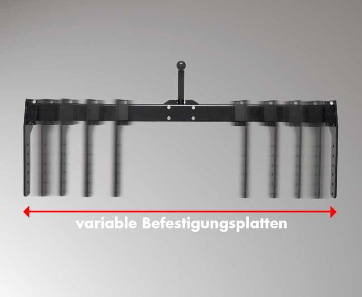 For chassis with AL-KO chassis, chassis with flanged, usable frame extension or other chassis suitable for mounting the device. The trailer coupling is a safety component and may only be installed by qualified personnel. Self-installation is not permitted. The revolution in trailer hitch assembly: Whereas in the past the AHK always had to be adapted exactly to the width of the frame or frame extension, the width of the LAB 1000 can be adjusted to the vehicle and can thus be mounted on almost any vehicle. The adjustment process is very simple: After mounting the side plates, the ball is pushed into the middle of the two screwing points and the clamping screws are tightened - that's it! To further optimize the weight, you can saw off the protrusions at the right and left ends - but this is not absolutely necessary.