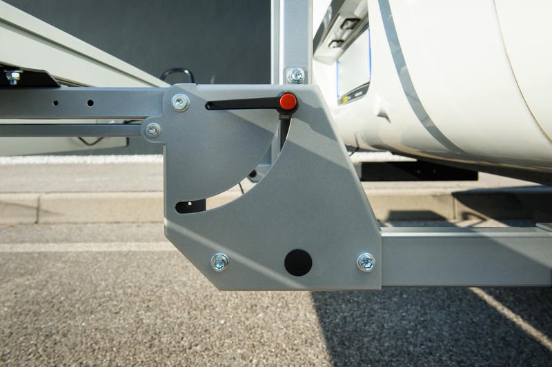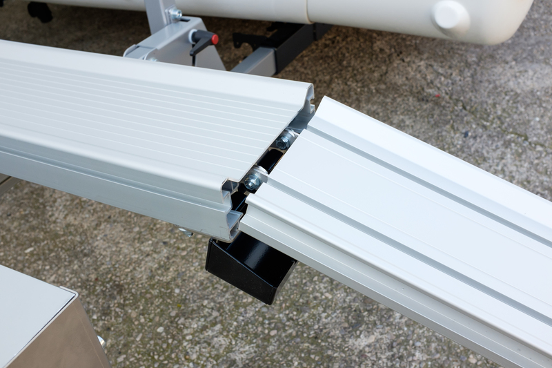 Increased structural strength. Rail with integrated ramp (Aluped Plus). Aluminium batten luminaire with Easy or Easy LED luminaires. Colour: grey. Load capacity: 150 kg. overhang can be folded in/out