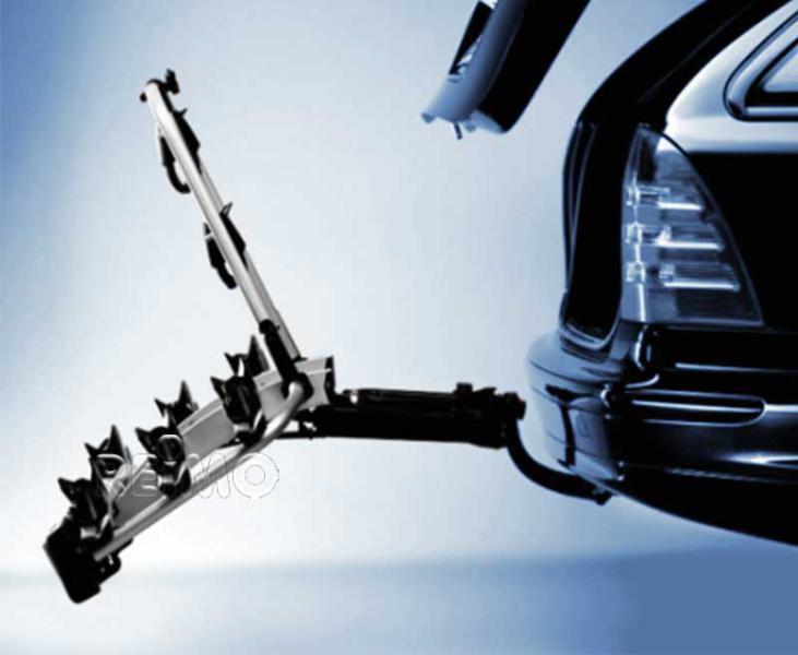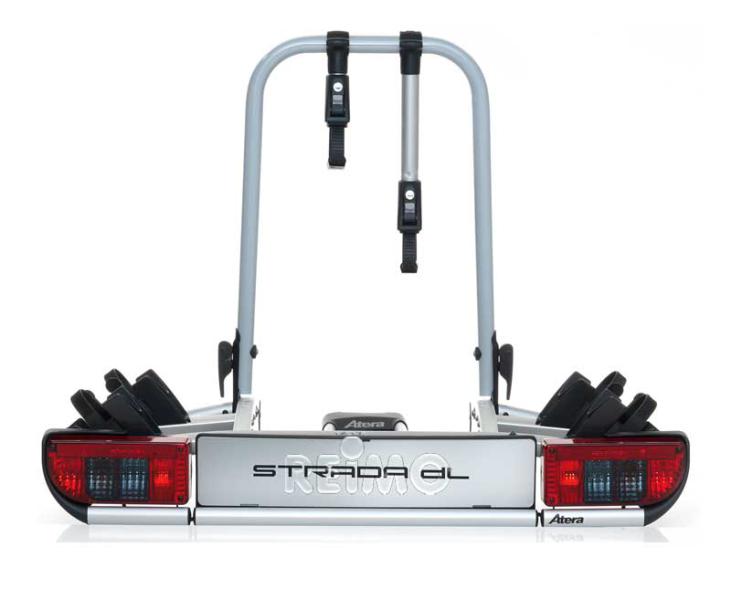 Very strong and lightweight construction of steel and aluminum. The wheel trays of the bike rear rack are freely positionable on the rail. So they are adaptable to any wheel size. Bike carrier with aluminum rails, light carrier with 13-pin plug and anti-theft device for carrier and bikes. The drawbar load of the trailer coupling must be min. 50 kg with 2 bikes and min. 60 kg with 3 bikes. Maximum load 2 wheels: 47 kg and 3 wheels: 45 kg. EU type approval. DL2 for 2 wheels can be upgraded with supplementary set 44284 for 3rd wheel.