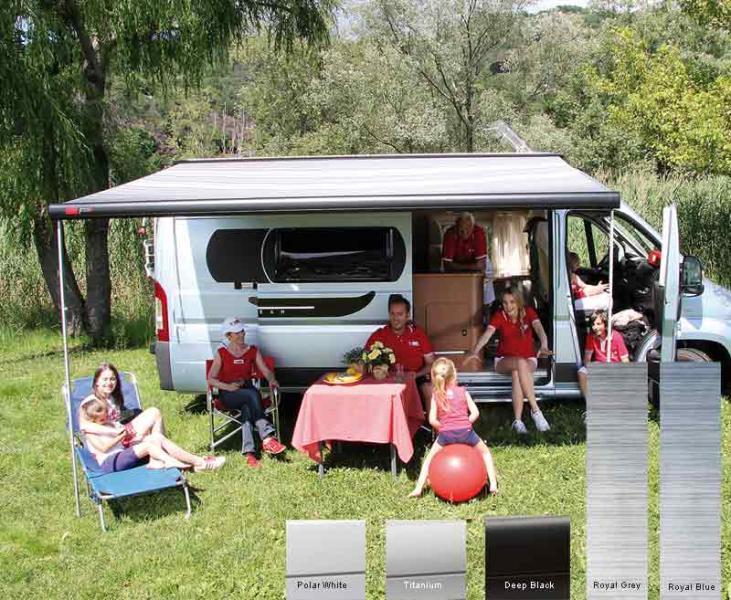 The F65 S roof awning integrates harmoniously into the vehicle without protruding. Thanks to its compact dimensions and rounded shape, it is even lighter and more elegant. Housing made of solid aluminium The installationtakes place on the vehicle roof, becausemounting adapter required (not included). Optionally, the Markise can be equipped with a 12V motor (Art. No. 43644) without increasing the width. change. The awning is also equipped with a suitable awning Privacy Room.iterbar. < Fit for Fiat Ducato kR fromyear 2006.