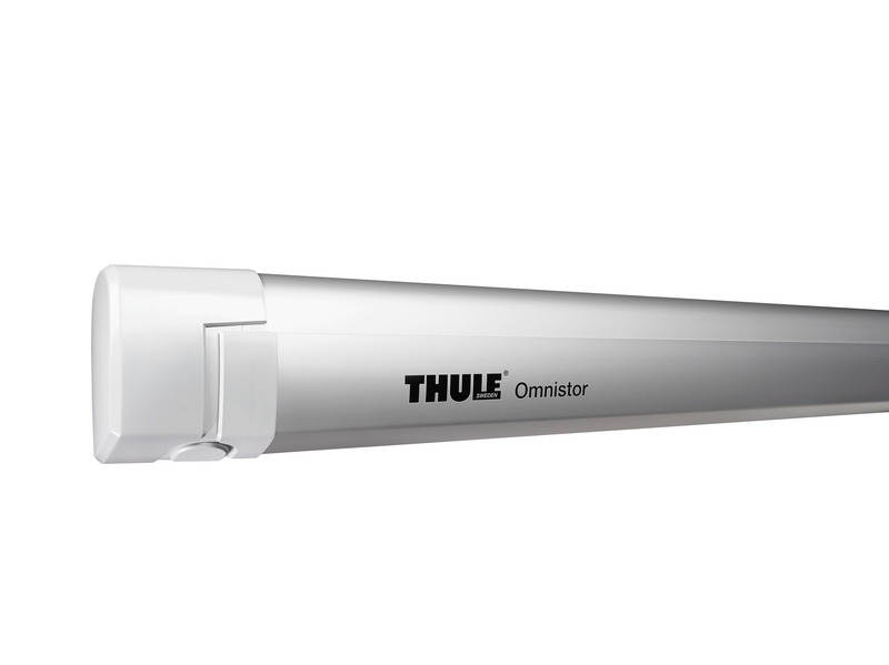 SPARE PARTS The design and appearance match the design of modern recreational vehicles and provide better integration on the vehicle wall. With tensioning arms, the robust articulated arms ensure that the awning cloth is not only perfectly stretched, but also provide even more wind resistance. Extends up to 2.50 m for a larger private area and protection from sun and rain. An optional rail is available to close the space under the awning. The rail has two functions: A Thule awning tent or a Thule LED strip can be attached to it. Since the drop angle can be adjusted as you like, the awning can be opened and closed even when the sliding door of the van is open.