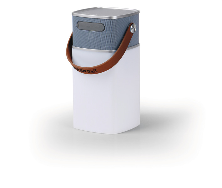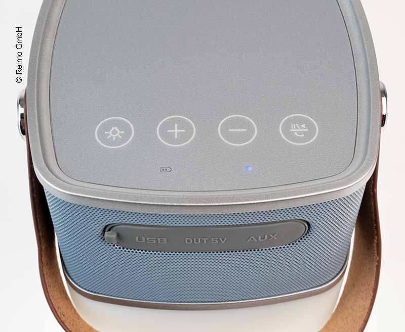 Can also be used as a power bank via USB output. With noble leather strap. Waterproof, therefore perfect for camping, charging time 6-7 hours, running time Speaker: up to 16 hours (medium volume), lighting time Lamp: up to 15 hours (brightest level). Certificates: CE/ROHS, incl. audio + USB cable. Dimmable.
