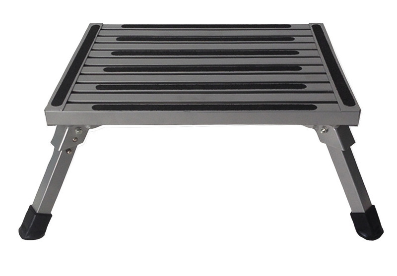 The folding aluminum step is very light yet heavy duty. Folded flat, it requires little storage space.
