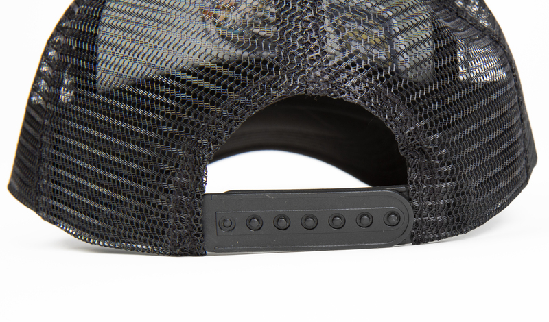 Stylish unisex baseball cap with high quality colored emblem embroidery. Airy mesh fabric provides air circulation even on warm days. Size adjustable. Color: Black