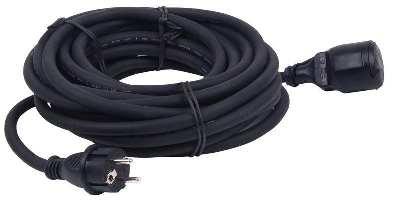 Extension cable with Schuko plug and Schuko coupling, neoprene rubber cable. For outdoor use. H07 RN-F 3G2.5,