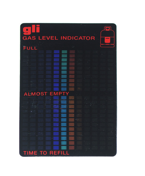 Liquid crystals indicate gas level and room temperature. Works at room temperature of 12°-30°C. With magnetic holder for attachment to the gas cylinder.