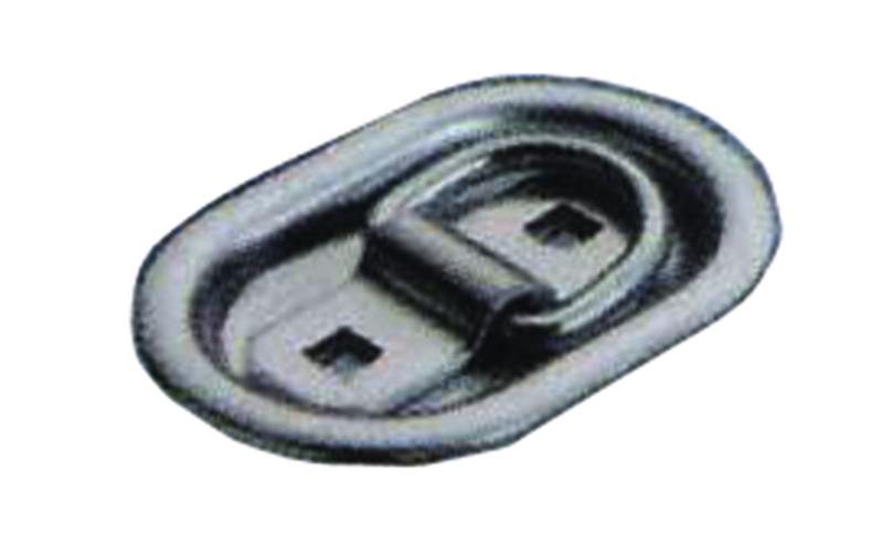 Lashing trough for recessed installation with hinged D-ring and bracket. Practical for securing loads