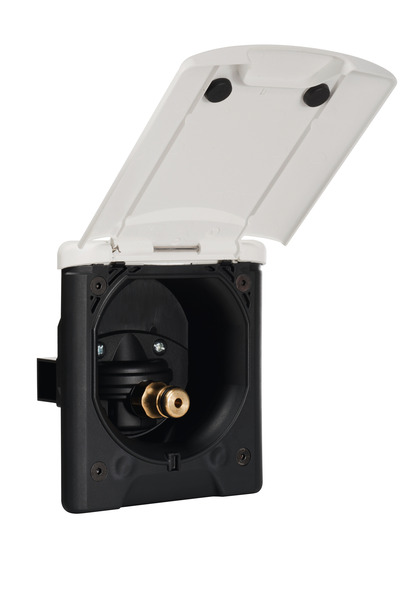 Water filler socket with pressure reducer and with magnetic lid closure.