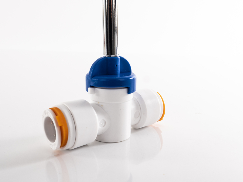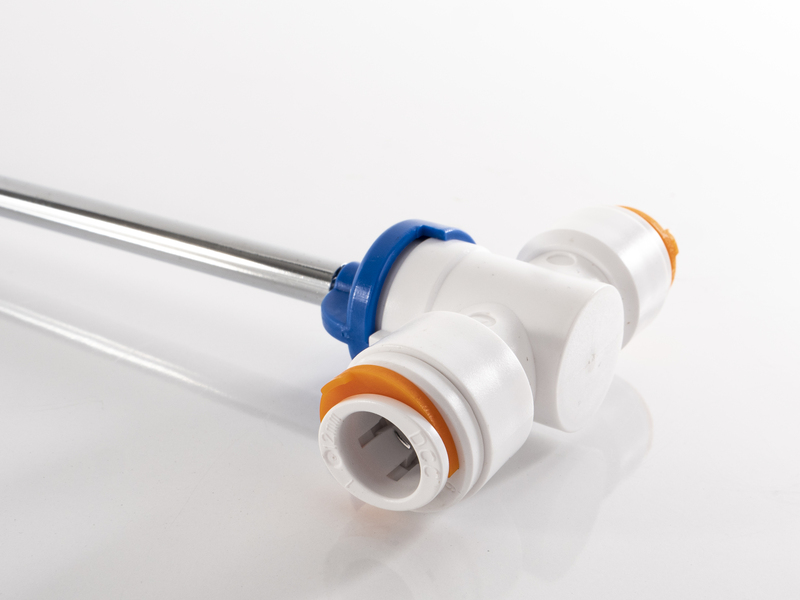 Shut-off valve for Ø 12 mm plug-in system with spindle extension, extension approx. 215 mm.