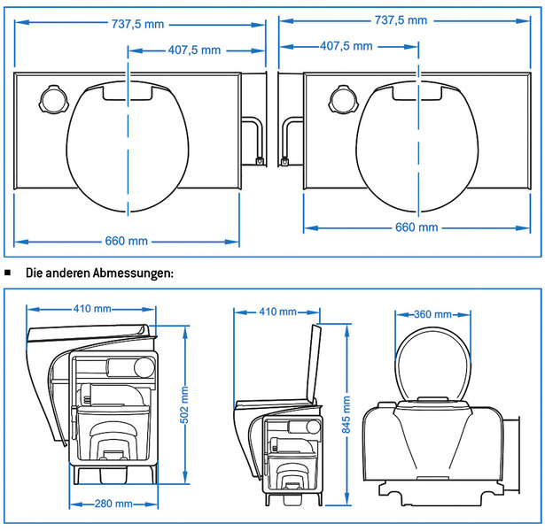 Thetford cassette toilet incl. fresh water tank 16.5 l