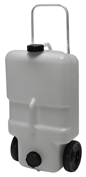 25 l waste water roll tank with 2 screw caps DIN61 and adjustable bow handle.