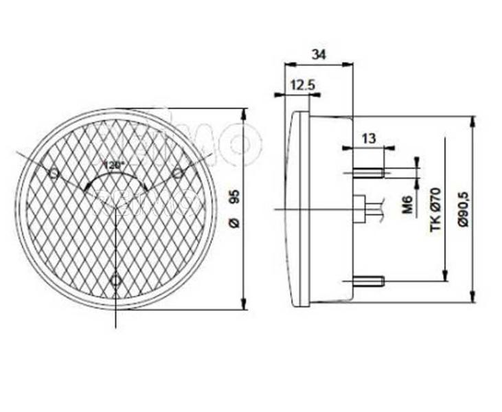 Rear fog lamp Ø 122 mm. LED, clear, 12V, 4W with 500 mm cable.